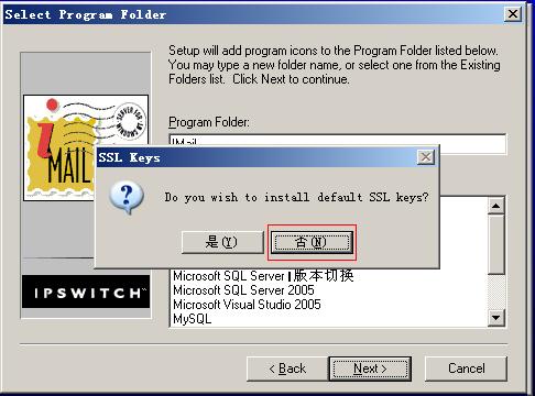 要不要安装SSL KEY 加密,一般我们不需要,选择否,如果你需要,就安装.NEXT下一步.