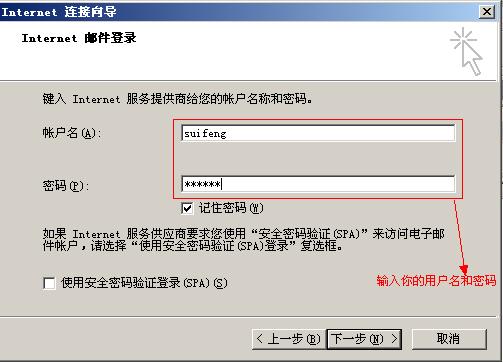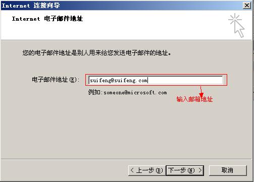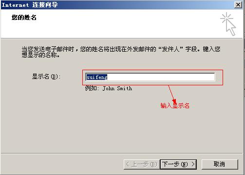 打开收信软件,有些人喜欢foxmail,我们就用微软的Outlook Express,道理一样,打开后点工具---点用户----点添加----邮件 就出来这个画面了,输入我的私人信箱,下一步