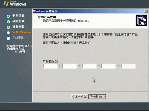 接下来输入软件的序列号,在光盘的封套或者说明书中找到这个序列号,输入到图6所示的“产品密钥”输入框中,点击“下一步”继续。