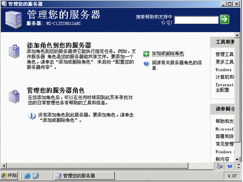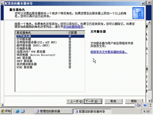 进入系统之后,将自动弹出一个“管理您的服务器”窗口,如图12所示。这里需要根据自己的需要进行详细配置。