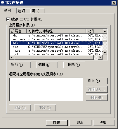 然后添加映射扩展名为".html"-->然后把检查文件是否存在的勾去掉这样就可以了,如果遇到“确定”按钮失效,可以用键盘事件编辑路径即可解决。